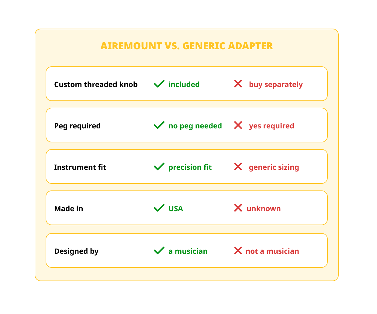 Because your instrument deserves better than a generic adapter that doesn't quite fit. AireMount stands and adapters are engineered specifically for the Akai EWI Solo and the Roland Aerophone Pro - every curve, every thread, every millimeter.