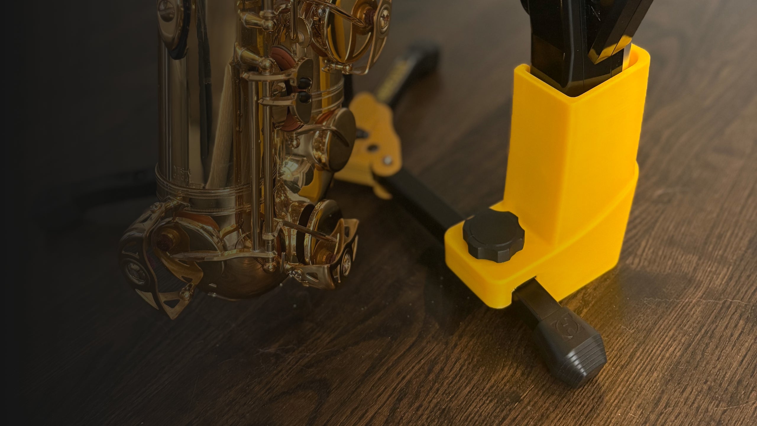 So I designed my own. I modeled the instrument's exact contour, engineered a custom knob to thread directly into the Hercules stand, and printed it in PLA+. It worked perfectly -- so I made more.